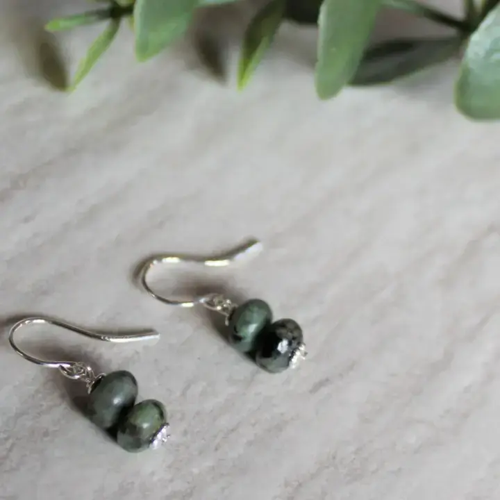 Handcrafted on Vancouver Island, our African Turquoise earrings are simple and elegant. With natural earthy tones, these earrings can be paired with any outfit, casual or dressy. * Hand wire-wrapped on sterling silver hooks. * African Turquoise is known as the stone of transformation and evolution. This stone opens the mind to new opportunities and ideas, bringing structure and prosperity. Providing the confidence necessary to further the journey of self-development, African Turquoise will renew your energy, spirit, and path in life.