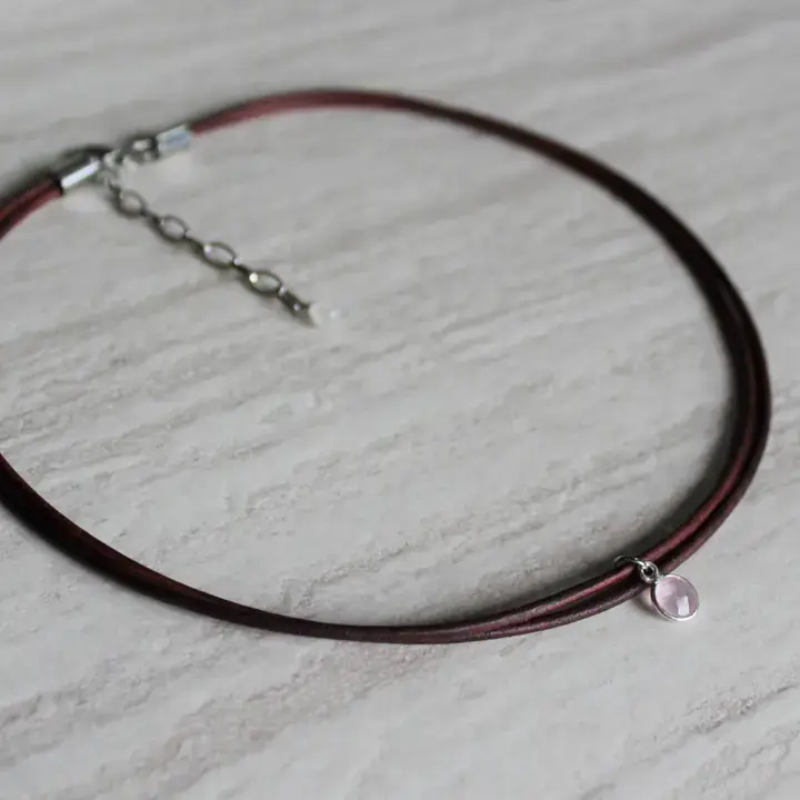 Handcrafted on Vancouver Island, we have designed this necklace as a versatile accessory that you can wear on a daily basis. Dainty and delicate, featuring a beautiful Rose Quartz pendant on antique brown genuine leather. Rose Quartz is known as a stone of unconditional love. Dissipating anger, this stone promotes forgiveness and understanding, helping to deepen relationships. * This 7mm Rose Quartz pendant is set in a sterling silver bezel. Finished with a durable stainless steel lobster clasp. Features a hand wire-wrapped Snow Quartz gemstone dangle at the back for extra charm! * The length is 13 inches, with an additional 3 inches of chain so you can adjust the fit accordingly to your preference.