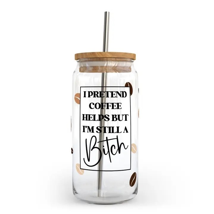 I Pretend Coffee Helps Glass Can W Bamboo Lid