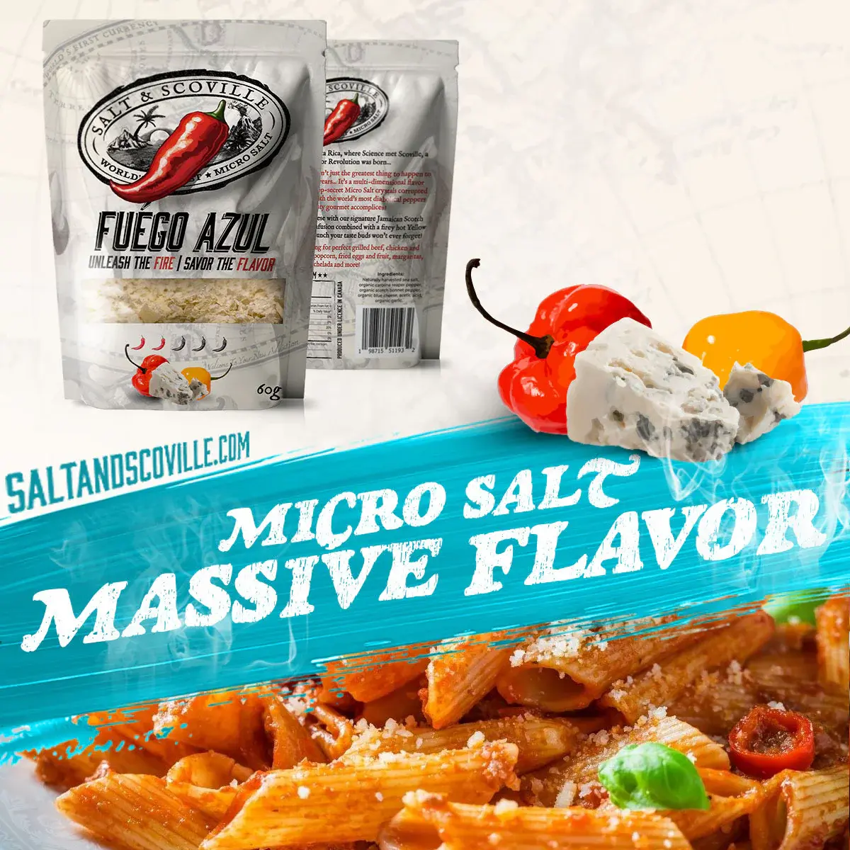 Made in Canada with organic ingredients, this isn’t just another spicy seasoning salt, it’s a crave inducing, game changing flavor experience you won’t find anywhere else. Dare to taste the flavor revolution and up your culinary game today with the ultimate Salt & Scoville Spicy Blue Cheese micro salt #flavorhack!
