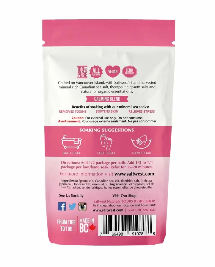 Saltwest NaturalsHandcrafted Canadian Bath Soak(0) C$9.00 Excl. tax In stock Scent: *Black Currant & VanillaEucalyptusLavenderRaincoast Tree HuggerWest Coast HoneysuckleAdd to cartLogin for wishlistPay directFree shipping From C$150.00Shipped today? You got 00 : 00 : 00Add to comparison list