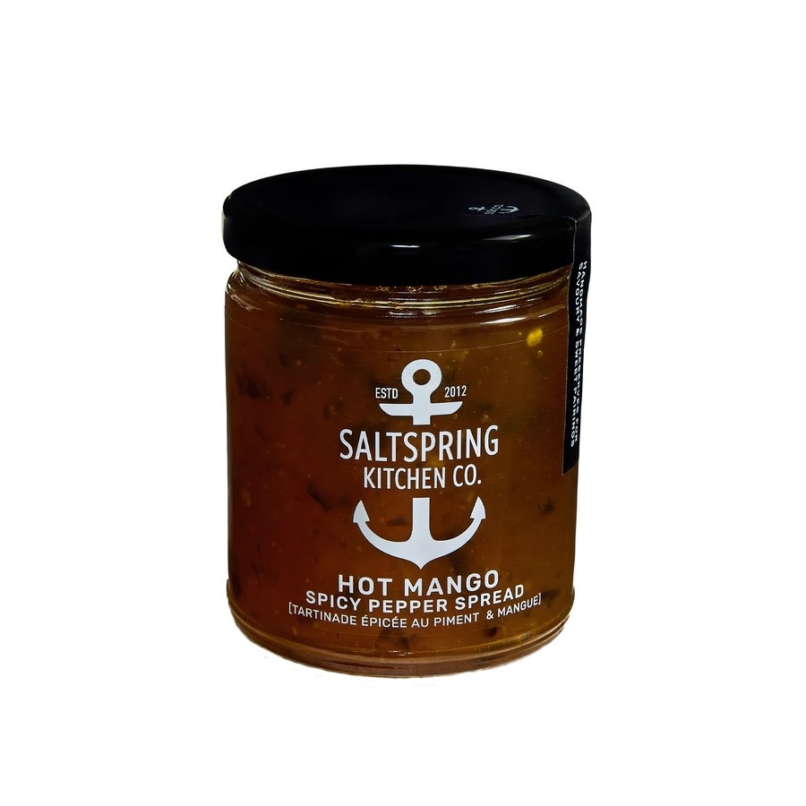 Hot Mango Spicy Pepper Spread - a not-too-sweet mango brings habañero and jalapeño peppers to the party to spice things up. Pairs with fresh Chèvre, Brie, Camembert, Gorgonzola, seafood, lamb, and pork.