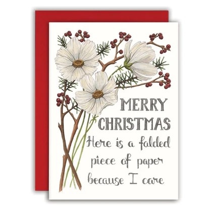 Merry Christmas Here is a Folded Piece of Paper Because I Care Card