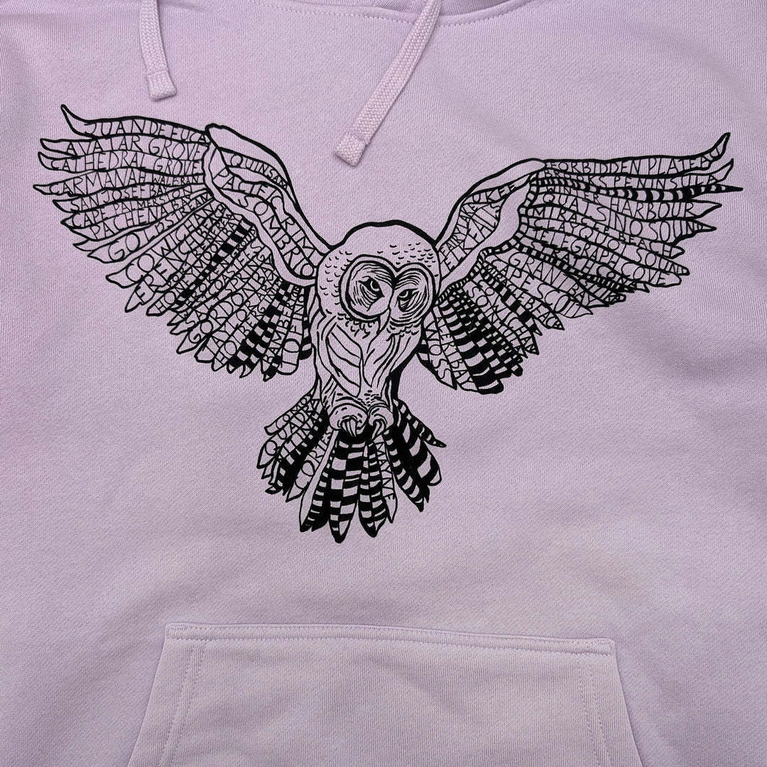 Owl Places design is printed on a unisex sweatshirt made with soft, midweight fleece and generous fit for comfort. Features jersey lined hood, heavy gauge draw cord with metal eyelets.