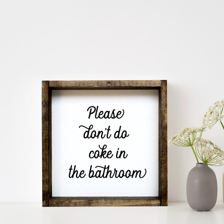 Please Don't Do Coke in the Bathroom Wood Sign