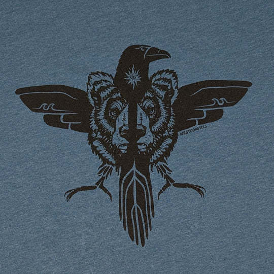 Raven Bear design is printed on a Poly-Cotton (50% Polyester / 50% Combed-Cotton) T-shirt. Unlike other Poly-Cotton T-shirts, our shirts are made with combed cotton, giving it a soft, worn in feel, superior drape, excellent colour fastness and durability throughout multiple washes.