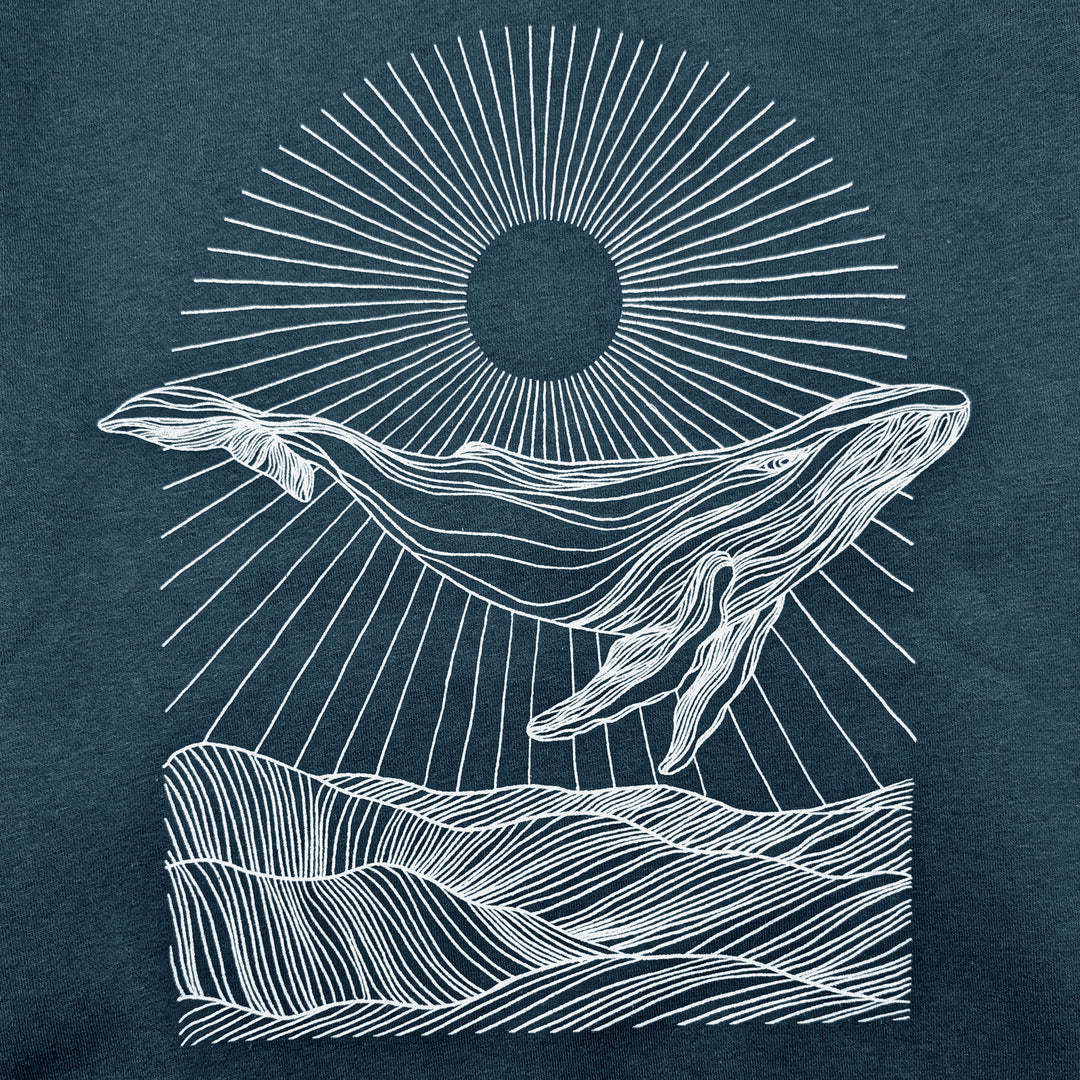 Sun Whale is printed on ultra comfy and soft medium weight fleece perfect for all seasons.Fabric content: 70/30 combed ring-spun cotton/recycled polyester with piling resistant 100% combed ring spun cotton face for easy wear.