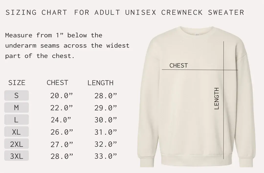This crewneck sweater features relaxed unisex fit. To find the best fit for you, please refer to sizing chart below.