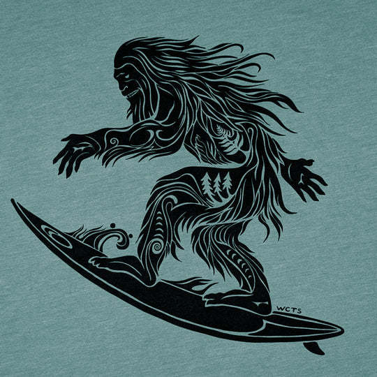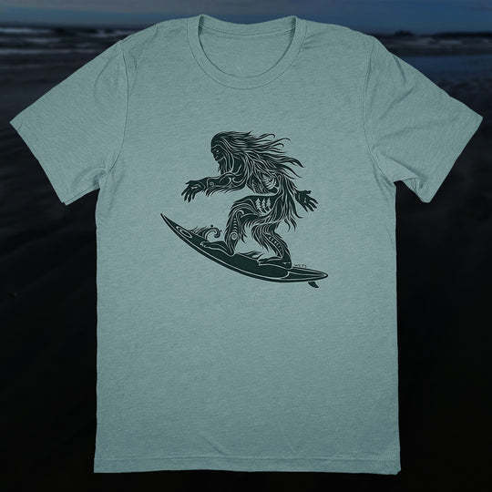 Surf Squatch design is printed on a Poly-Cotton (50% Polyester / 50% Combed-Cotton) T-shirt. Unlike other Poly-Cotton T-shirts, our shirts are made with combed cotton, giving it a soft, worn in feel, superior drape, excellent colour fastness and durability throughout multiple washes.