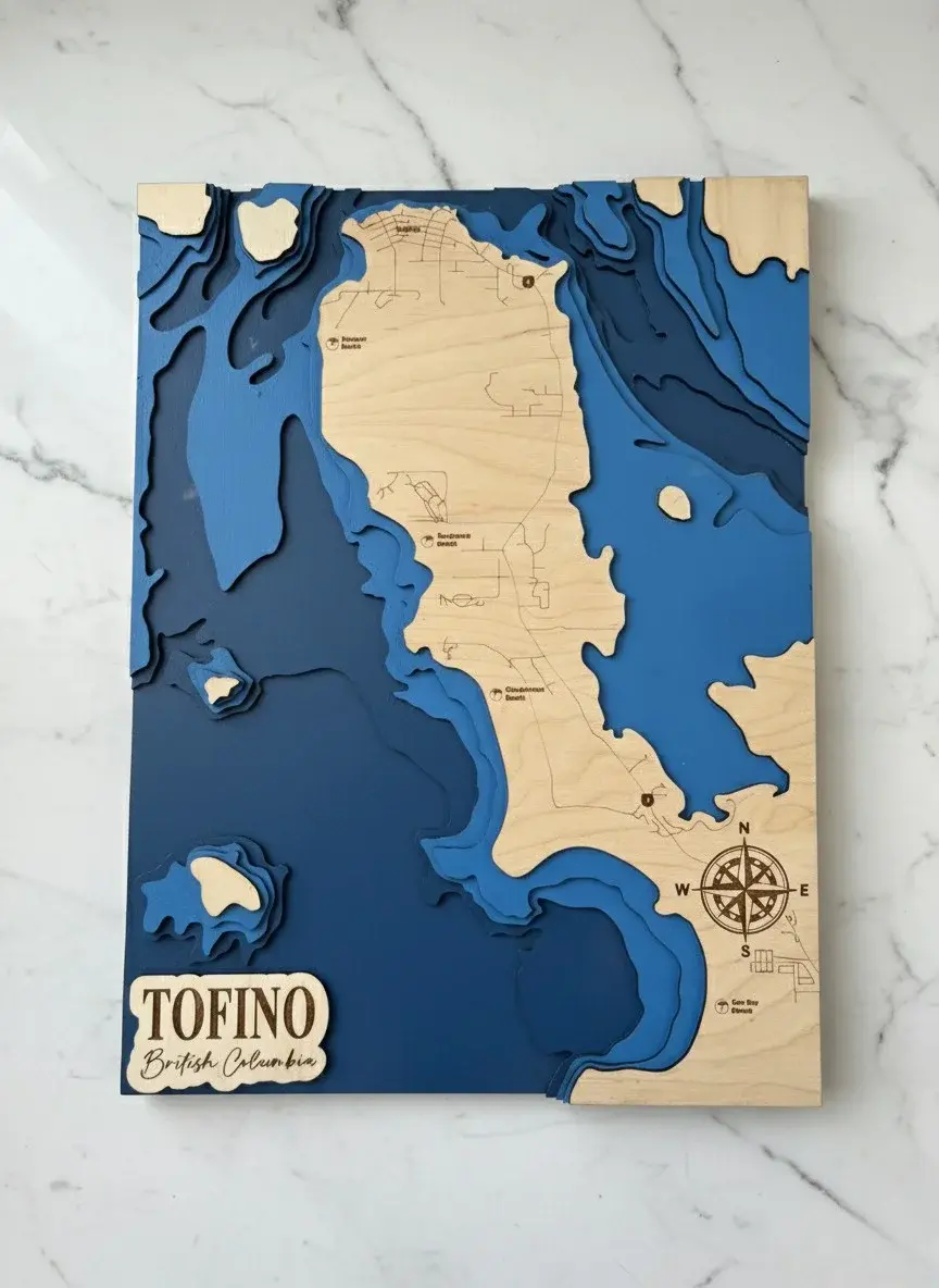 These Layered Bathymetric Maps are designed and created by Namu Home Studio in Nanaimo B.C. Maps are approximately 15" x 20".