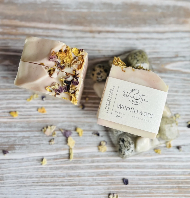 Light and fruity with a blend of tangerine, rosemary and lavender essential oils. Olive oil infused with madder root powder gives just a hint of pink. Topped with local organically grown & dried pansies and violets.